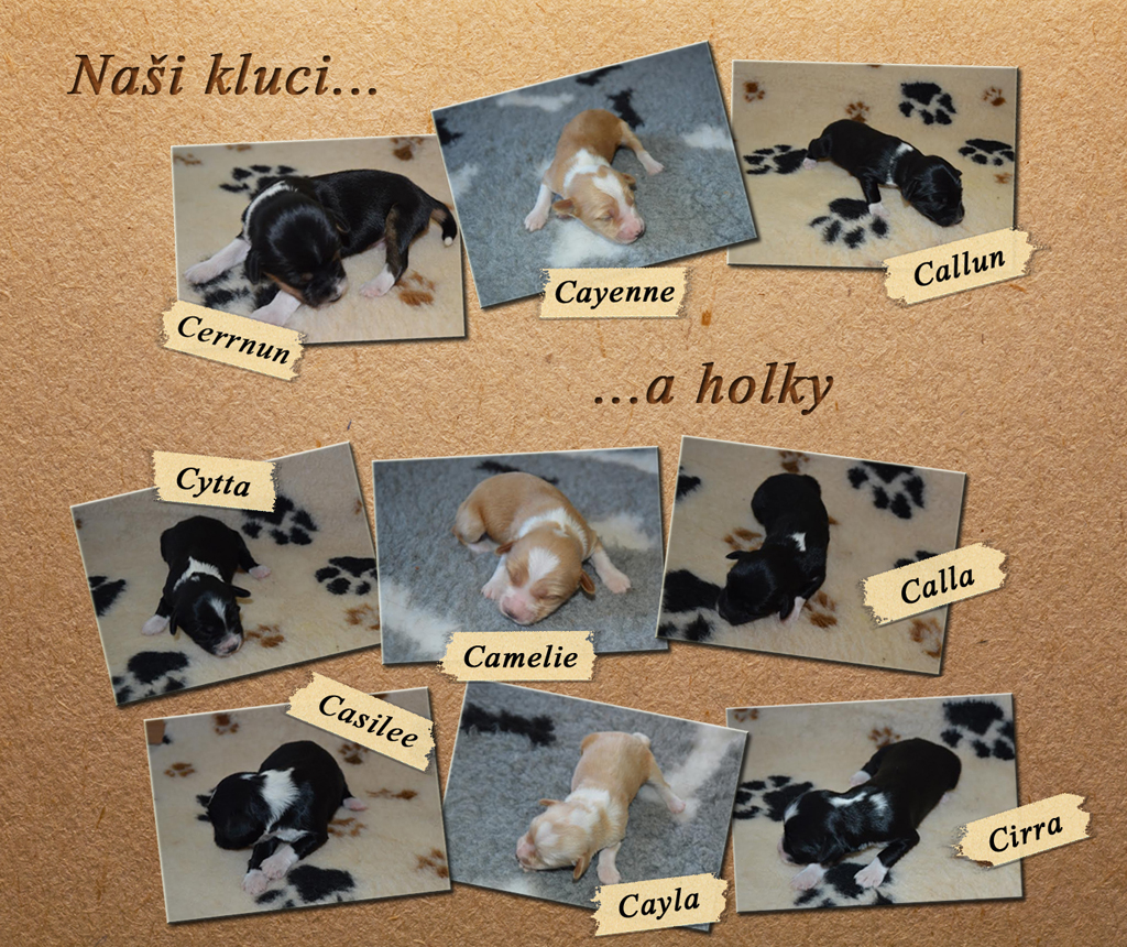 Štěňátka narozená 18. 5. 2015. Štěňátka (3 kluci a 6 holek) jsou již všechna v nových rodinách.